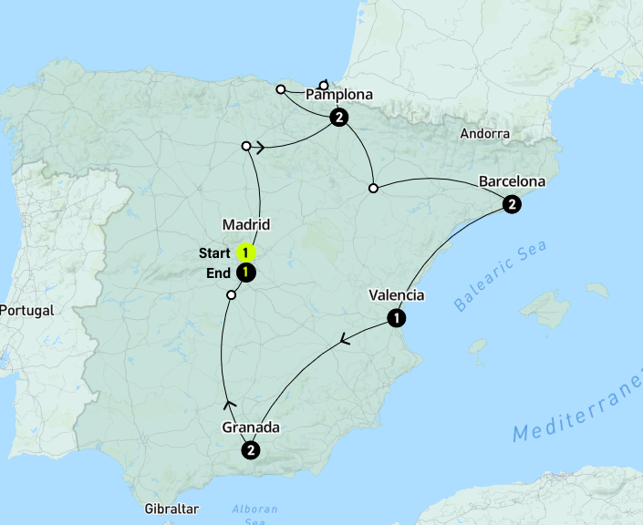 - Ontdek Pamplona, Barcelona, Granada & Madrid